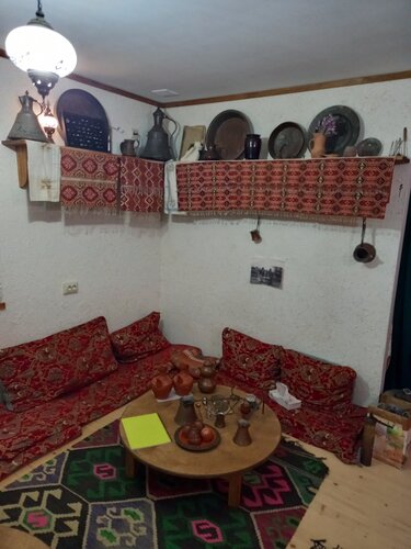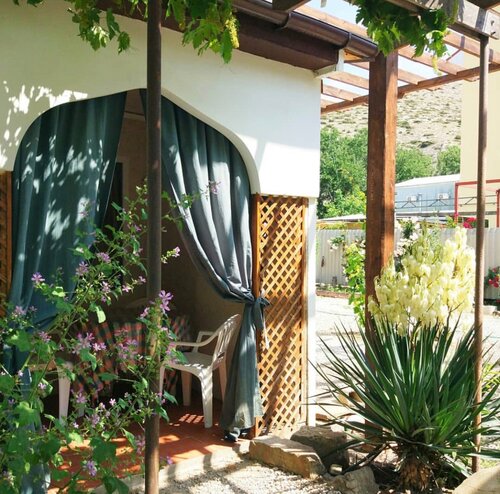 Мы жили в палатке,так сказать это еще и кемпинг. Если есть желание так отдыхать,то пожалуйста. Можно снять благоустроенную комнату. Но как выяснилось,хозяин гостиницы и кемпинга,ещё и коллекционер и хранитель домашнего музея,конечно это не эрмитаж,но заслуживает уважения,человек сам всё по крупицам собирае. Провёл экскурсию,рассказал об истории Крыма,происходивших событиях,обычаях. Очень интересно и познавательно,простым языком. Видно,что человек заинтересован в развитии и процветании этого края.